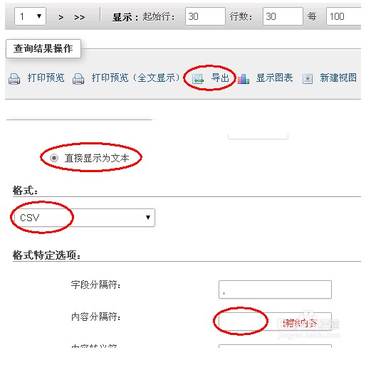 在執行(xíng)SQL語句生(shēng)成的(de)頁 ©απ面上(shàng)點擊“導出”,選擇“自(zì)定義”-> ≤£§;“直接顯示為(wèi)文(wén)本”,CSV格式,清空(→∞✔kōng)“內(nèi)容分(fēn)隔符”為(wèi)空(kōng)。☆₹λ