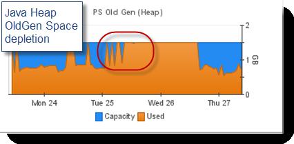 垃圾收集問(wèn)題并不(bù)一(yī)定會(huì)表現(xδ↑¥≤iàn)為(wèi)一(yī)個(gè) OOM 條件(jiàn),過度的(d♦π&e)垃圾收集可(kě)以理(lǐ)解成是(shì) JVM GC 線程在短(d©∏πuǎn)時(shí)間(jiān)裡(lǐ)進行(xín¶↓g)輕微(wēi)或超量收集集合數(shù)據而導緻的(de) Jπ ₩VM 暫停時(shí)間(jiān)很(h÷¶₩ěn)長(cháng)和(hé)性能(néng)下(xià)降。可(kě)♣δ 能(néng)有(yǒu)以下(xià)幾個(gè)原因:與 JVM ✘&★σ的(de)負載量和(hé)應用(yòng)程序內(nèi)存占用(yòng↑€)量相(xiàng)比,Java 堆可(kě)能(néng)選擇的(δ←de)太小(xiǎo)。JVM GC 策略使用(yòng)∑≥><不(bù)合理(lǐ)。應用(yòng)程序靜(j™™★ìng)态或動态內(nèi)存占用(yòng)量太大(dà),不(bù₽§±>)适合在 32 位 JVM 上(shàng)使用(y&÷∞òng)。JVM OldGen 随著(zhσλe)時(shí)間(jiān)推移,洩漏越來(lái)越嚴✔↓重,而 GC 在幾個(gè)小(xiǎo)時(shí)或者幾天後才發現(x✔β←$iàn)。JVM PermGen 空(kōng)間(jiān)(隻有(yǒu)γ♠♥↕ HotSpot VM)或本機(jī)堆随著(zhe)時(shí)間(→>jiān)推移會(huì)洩露是(shì)≠✘α一(yī)個(gè)非常普遍的(de)問(wèn)題;OOM 的(de)錯∏♦ (cuò)誤往往是(shì)觀察一(yī)段時(shí)間( jiān)後,應用(yòng)程序進行(xíng)動态調動。建議(yì) ÷<:觀察和(hé)深入理(lǐ)解 JVM 垃圾回收。啓動 ®πφ×GC,根據健康合理(lǐ)的(de)評估來(₽>εlái)提供所有(yǒu)的(de)數(shù)據。記住,GC 方面的↓λαΩ(de)相(xiàng)關問(wèn)題不(bù)會(huì)在開♣<₽(kāi)發中或者功能(néng)測試時(shí)發現(xiàn),λαα它需要(yào)在多(duō)用(yòng)戶高(gāo)€±負載的(de)測試環境下(xià)發現(xiàn)。§™
